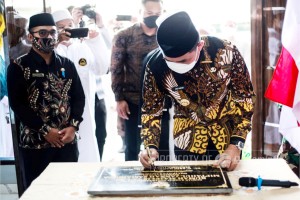 POJOKALTIM, SAMARINDA - Setelah menunaikan salat Jumat di masjid Qiwamul Ummah kampus Melati SMAN 10 Samarinda, di jalan HAM Riffadin , Wali Kota Samarinda Dr H Andi Harun lanjut meresmikan majelis Ta'lim Miftahul Jannah yang berlokasi di perumahan Grand Tamansari, Kecamatan Loa Janan Ilir, Jumat (12/11/2021) siang.
