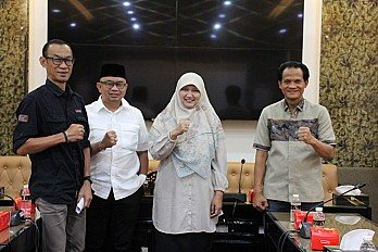 Rombongan yang terdiri dari Subandi, Fadly Imawan, dan Didik Agung Eko Wahono diterima oleh Anggota Banmus DPRD Jatim, Lilik Hendarwati, di Ruang Rapat Banmus DPRD Jatim.