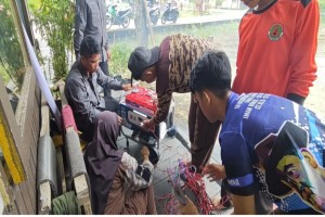 Anggota Pramuka Peduli Sebulu saat latihan penggunaan mesin alkon. (Istimewa)