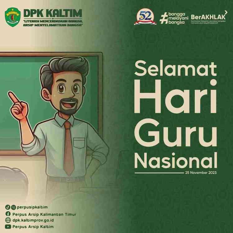 POJOKALTIM, SAMARINDA - Dinas Perpustakaan dan Kearsipan (DPK) Provinsi Kalimantan Timur menyampaikan ucapan selamat Hari Guru Nasional 2023.