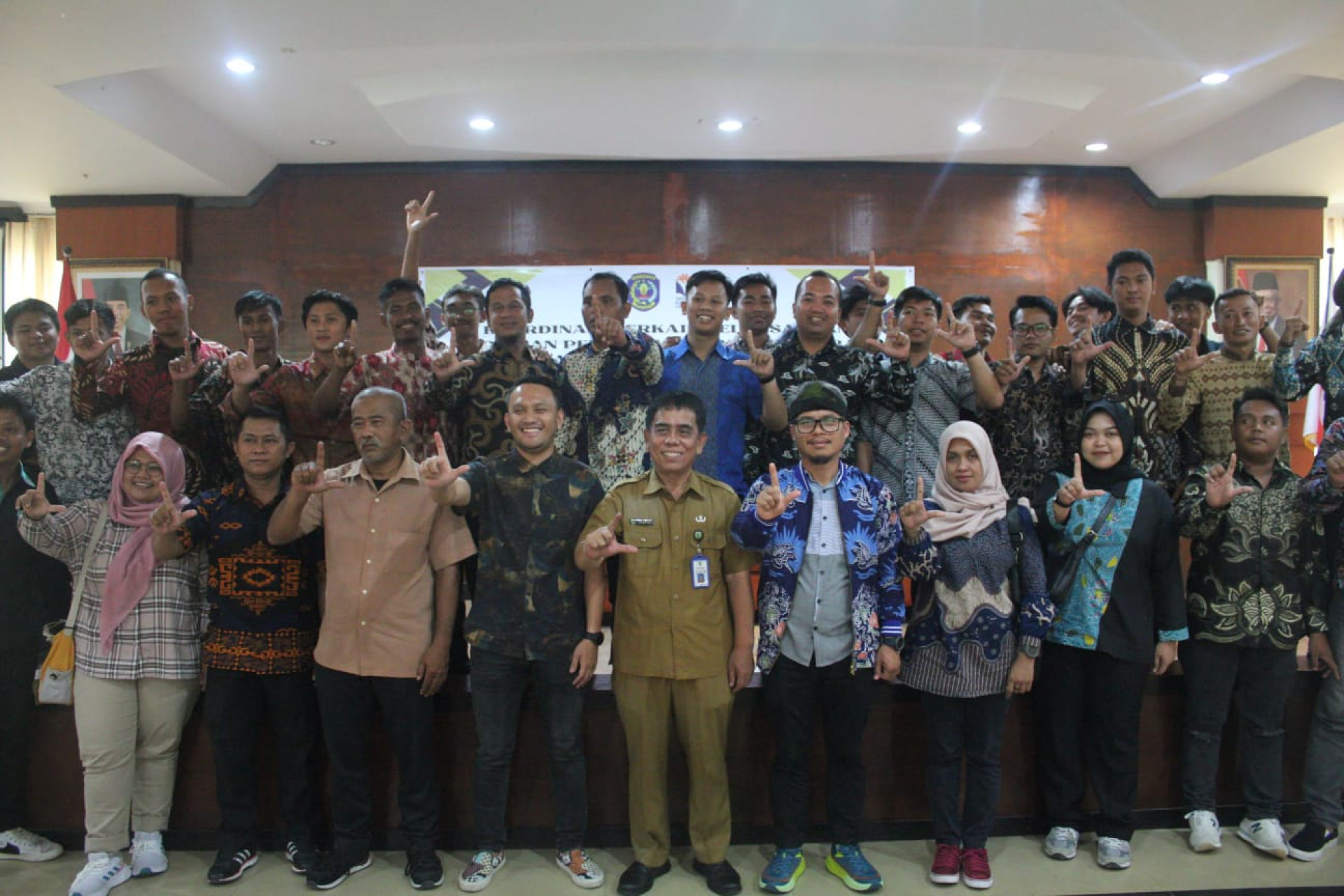 Usai melakukan sesi diskusi agenda visitasi ditutup dengan sesi foto bersama dan mengelilingi layanan dan fasilitas DPK Kaltim bersama Pustakawan DPK Kaltim, Winda Fitri Yantie dan Adriansyah. (adv/azr/DPK Kaltim)