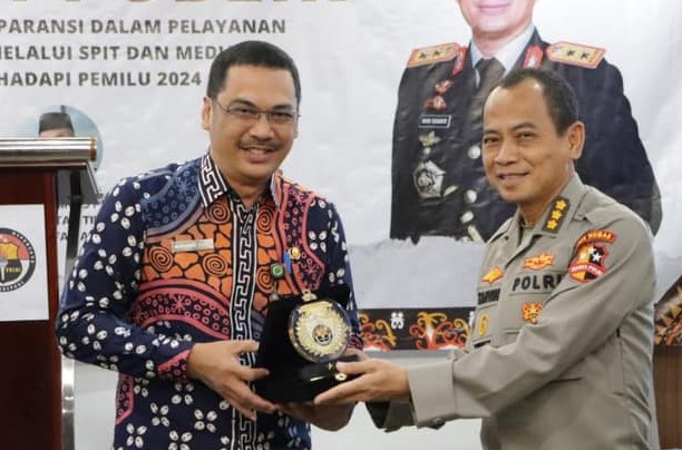 POJOKALTIM.CO.ID, BALIKPAPAN - Kepolisian Daerah (Polda) Kalimantan Timur menggelar diskusi Publik guna mewujudkan transparansi dalam pelayanan Informasi Publik melalui Sistem Pengelolaan Informasi Terpadu (SPIT) dan MediaHUB dalam memasuki tahun politik Pemilu 2024 di Hotel Golden Tulip Balikpapan, Kamis (9/3/2023).