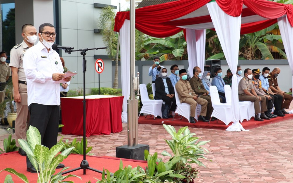 SAMPAIKAN: Plt Sekdaprov Kaltim Riza Indra Riadi saat membacakan sambutan tertulis gubernur Kaltim.