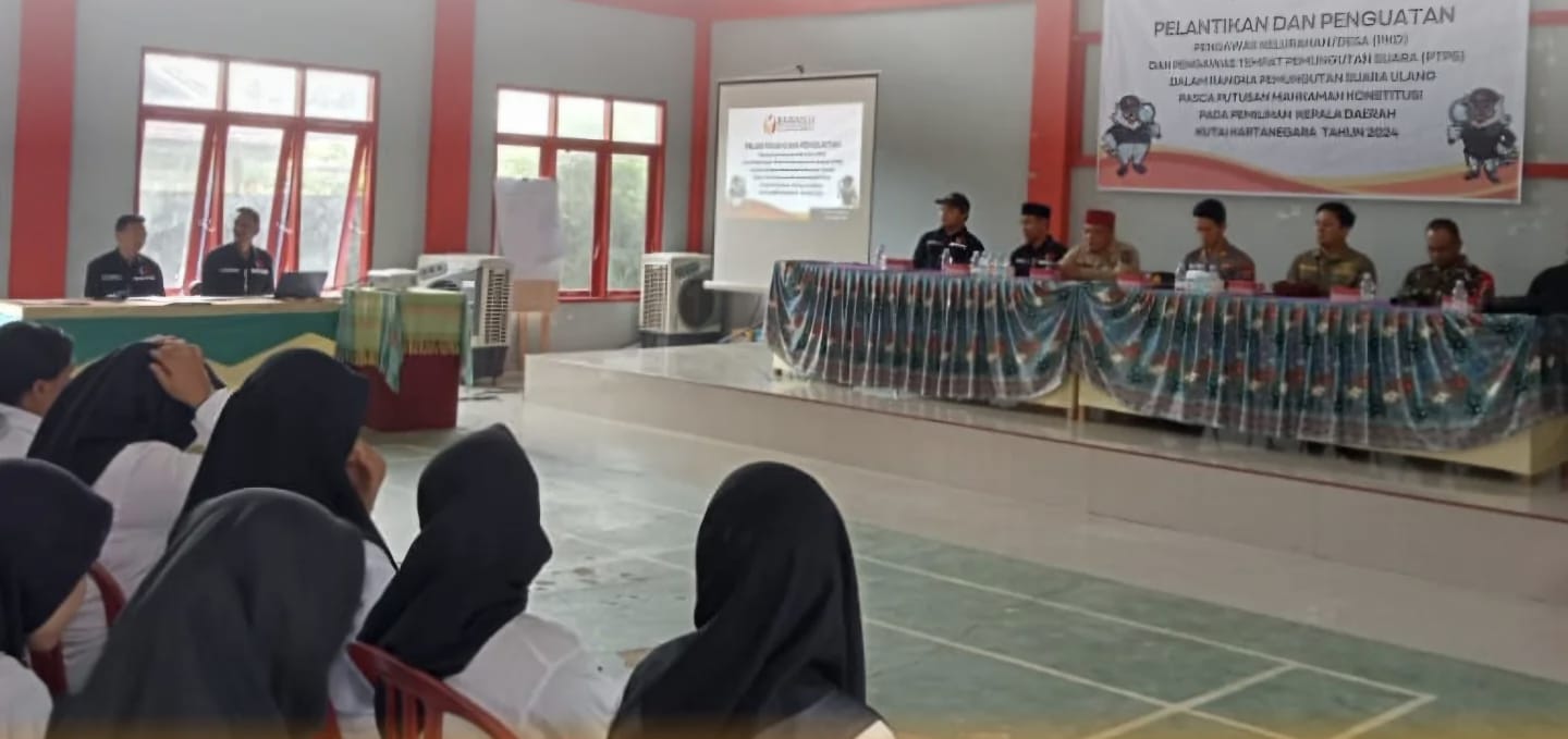 TENGGARONG-Tahapan Pemungutan Suara Ulang (PSU) Pilkada Kukar 2024 terus berjalan. Di Kecamatan Sebulu, Panitia Pengawas Pemilu Kecamatan (Panwascam) resmi melantik para Pengawas Kelurahan/Desa (PKD) dan Pengawas Tempat Pemungutan Suara (PTPS) untuk mengawal jalannya PSU.