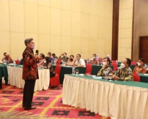 POJOKALTIM, BALIKPAPAN - Badan Pengembangan Sumber Daya Manusia (BPSDM) selama tiga hari dimulai tanggal 17 hingga19 Februari 2022 melaksanakan kegiatan Pelatihan Dana Desa bagi Perangkat Desa dan Pengelola Badan Usaha Milik Desa (BUMDes) di Hotel Novotel Balikpapan.