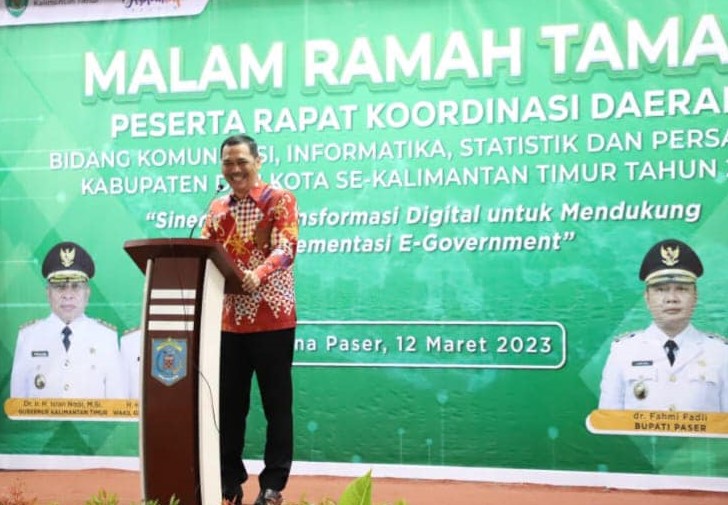 POJOKALTIM.CO.ID, TANA PASER- Dalam rangka kegiatan Rapat Koordinasi Daerah (Rakorda) Bidang Komunikasi, Informasi, Statistik, dan Persandian se-Kalimantan Timur Tahun 2023. Pemerintah Kabupaten Paser selaku tuan rumah acara, menggelar jamuan makan pada Malam Ramah Tamah (Welcome Dinner) di rumah jabatan Bupati Paser, Minggu (12/3/2023) malam.