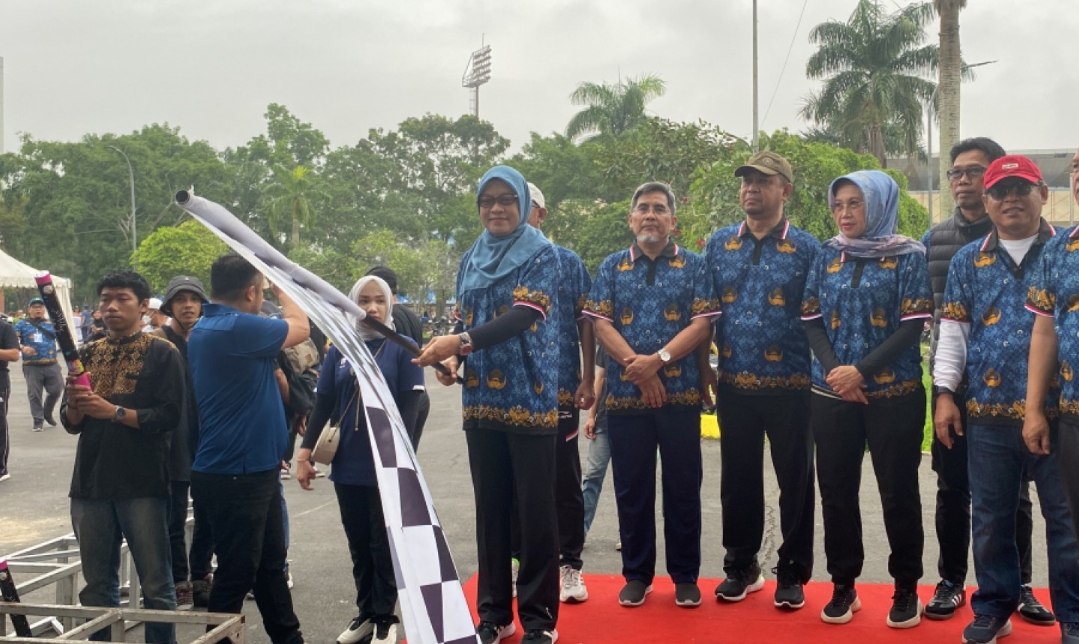Ya, Sekretaris Daerah Provinsi Kalimantan Timur (Kaltim) sekaligus Ketua Dewan Pengurus KORPRI Kaltim, Sri Wahyuni didaulat membuka jalan sehat yang ditandai dengan pengibaran bendera start.