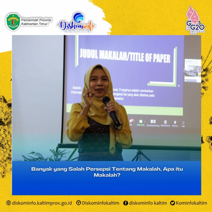 âBanyak yang salah paham tentang bagaimana menulis makalah. Ada yang menulis makalah, tapi saat dikumpulkan jenisnya berbeda. Ada yang hanya berupa artikel, kumpulan kliping dan dokumen-dokumen biasa," kata Silvi saat menyampaiakan materi Peningkatan Kompetensi Pranata Humas. Dalam Workshop Pranata Hubungan Masyarakat yang digelar Dinas Komunikasi dan Informatika (Diskominfo) Kaltim di Hotel Selyca Mulia Samarinda, Kamis (7/7/2022).