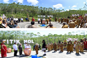 POJOKALTIM, PENAJAM - Para perwakilan Provinsi dari seluruh Tanah Air hadir mengikuti prosesi penyatuan tanah dan air secara simbolis bersama Presiden Joko Widodo di Kawasan Titik Nol Kilometer Ibu Kota Nusantara (IKN), Kabupaten Penajam Paser Utara (PPU), Senin, (14/3/2022).