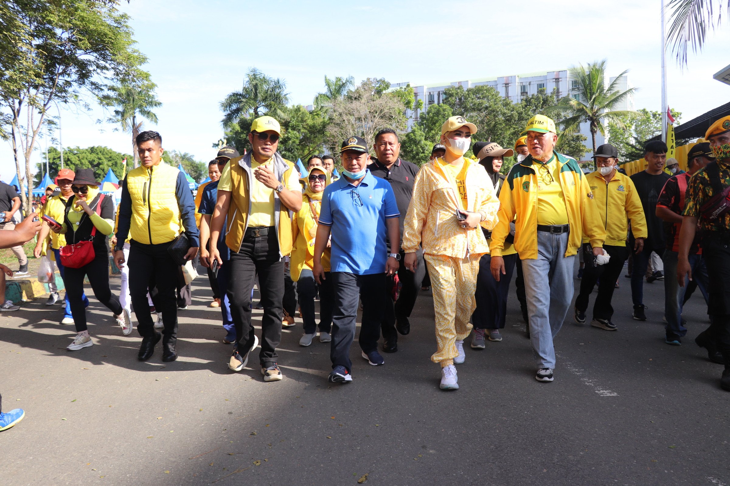 MERIAHKAN: Wakil Ketua DPRD Kaltim Sigit Wibowo (Baju Biru) mengikuti jalan sehat dalam rangka HUT ke-58 Golkar, Minggu (16/10)