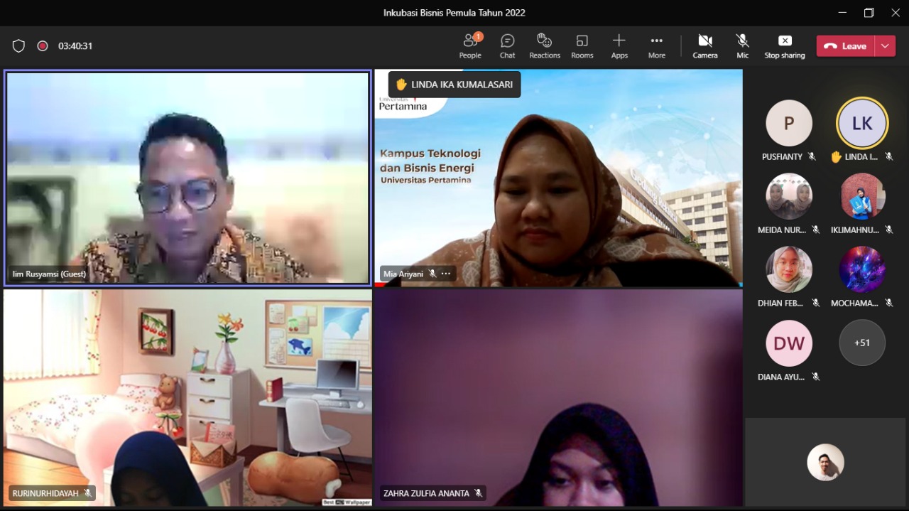 POJOKALTIM, JAKARTA - Ketua Umum Gerakan Sosial OK OCE, Iim Rusyamsi hadiri Program Inkubasi Bisnis Pemula tahun 2022 dengan tema "Entrepreneur Mindset" yang diselenggarakan oleh Universitas Pertamina secara daring (online) pada, Jumat (05/08/2022). Program Inkubasi Bisnis ini juga dihadiri oleh M. Husni Mubarak Lubis, MS, Selaku Direktur Kemahasiswaan dan Alumni Universitas Pertamina.