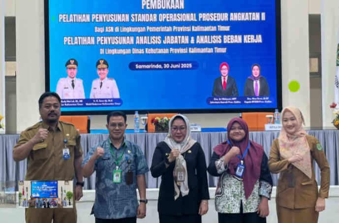 SAMARINDA - Dalam upaya memperkuat tata kelola kelembagaan dan meningkatkan kualitas pelayanan publik, Dinas Kehutanan Provinsi Kalimantan Timur menggelar Pelatihan Penyusunan Standar Operasional Prosedur (SOP) Angkatan II serta Pelatihan Penyusunan Analisis Jabatan (ANJAB) dan Analisis Beban Kerja (ABK).