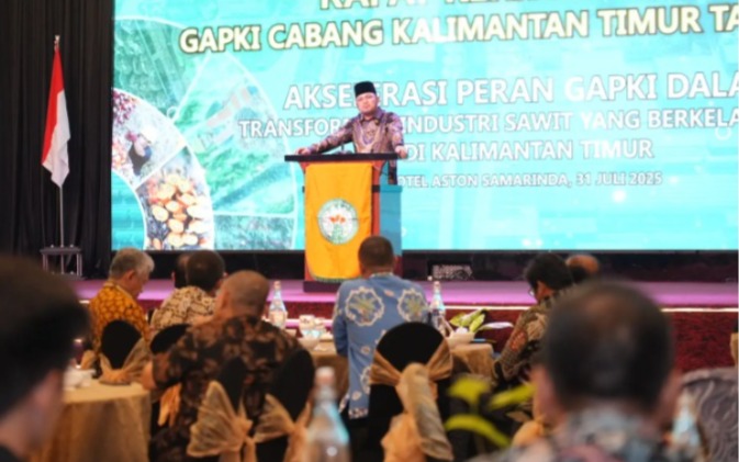 SAMARINDA - Gubernur Kalimantan Timur, H. Rudy Mas'ud (Harum), mengajak Gabungan Pengusaha Kelapa Sawit Indonesia (GAPKI) Cabang Kaltim untuk menjadi mitra strategis pemerintah dalam mengakselerasi transformasi industri kelapa sawit di daerah. Ajakan tersebut disampaikan dalam Rapat Kerja Cabang (Rakercab) GAPKI Kaltim yang digelar di Hotel Aston, Kamis (1/8/2025).