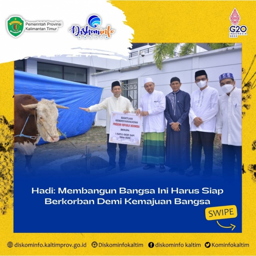 Sapi bantuan Presiden RI , Jokowi yang merupakan Sapi inseminasi buatan lokal Kaltim dengan berat 827 kg, yang mana ini merupakan tahun ke 3 (tiga) Wagub Kaltim, Hadi menyembelih hewan kurban dari bantuan Jokowi.