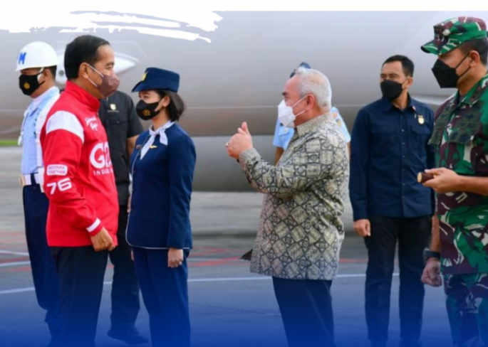 POJOKALTIM, BALIKPAPAN - Presiden Republik Indonesia (RI) Joko Widodo kembali menginjakkan Tanah Borneo untuk hadir di lokasi Ibu Kota Negara pada Senin, 14 Maret 2022. Hari ini pukul 16.00 wita, Presiden bersama dengan Ibu Negara Iriana Jokowi tiba di Bandara Internasional Sultan Adji Muhammad Sulaiman Balikpapan.