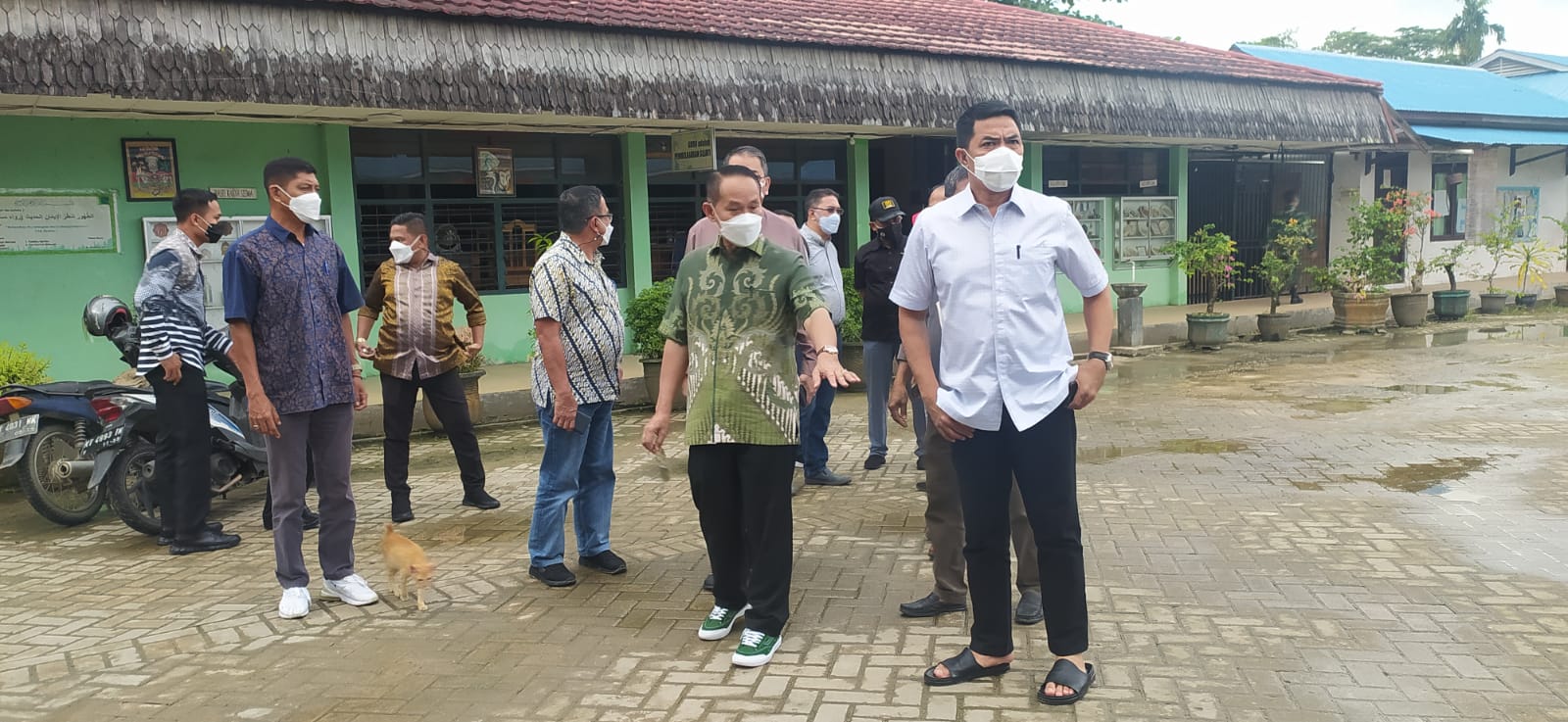 VAKSIN: Andi Harun (seragam putih) memantau persiapan SMP 22 Samarinda menyambut presiden.
