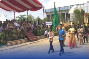 SEMARAK: Parade peserta Jambore Pemuda Daerah 2022
