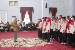 POJOKALTIM, SAMARINDA - Ketua Umum Dewan Pengurus Pusat Perhimpunan Penyuluh Pertanian Indonesia (DPP Perhiptani) yang juga Gubernur Kaltim H Isran Noor resmi mengukuhkan Dewan Pengurus Wilayah (DPW) Perhiptani Kalimantan Timur periode 2022-2027.