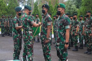 Kegiatan serah terima diikuti oleh seluruh perwira dan prajurit Yonif Raider 600/Mdg di depan Mako Yonif Raider 600/Mdg, Manggar Baru, Balikpapan Timur, Senin (21/2/2022).