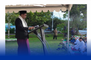 POJIKALTIM.CO.ID, BALIKPAPAN - Wakil Gubernur Kaltim, H Hadi Mulyadi menjadi khatib Salat Idulfitri 1443 H di Lapangan Merdeka Pertamina Balikpapan, Senin (2/5).
