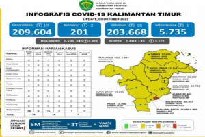 POJOKALTIM,SAMARINDA - Pasien meninggal dunia akibat positif terjangkit virus corona baru di Provinsi Kalimantan Timur kembali bertambah 1 orang per 5 Oktober 2022.