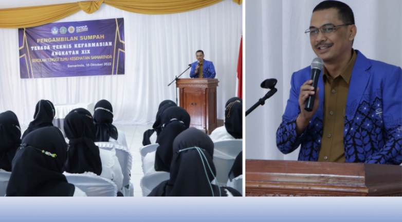 POJOKALTIM, SAMARINDA - Sebanyak 27 Wisudawan Wisudawati Sekolah Tinggi Ilmu Kesehatan Samarinda (STIKSAM) angkatan XIX dilantik sekaligus diambil sumpahnya oleh Ketua Persatuan Ahli Farmasi Indonesia (PAFI) Kaltim Muhammad Faisal bertempat di Kampus STIKSAM Lt. 3 Jl. A.W Syahranie, Senin (10/10).