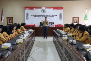 POJOKALTIM, SAMARINDA - Mahasiswa Fakultas Ilmu Sosial dan Ilmu Politik Universitas Mulawarman (Unmul), , Program Studi Ilmu Pemerintahan mengikuti kuliah umum yang disampaikan Wakil Ketua DPRD Kaltim Seno Aji. Kuliah umum berlangsung di Kantor DPRD Kaltim, belum lama ini.