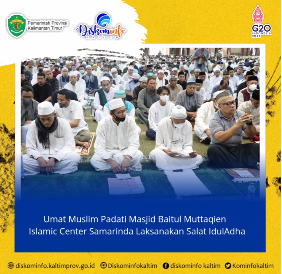POJOKALTIM.CO.ID, SAMARINDA - Gema takbir berkumandang menyuarakan takbir kepada Allah SWT. Menyambut datangnya Hari Raya IdulAdha. Ribuan umat muslim penuhi Masjid Baitul Muttaqien Islamic Center Samarinda untuk melaksanakan Salat IdulAdha 1443 Hijriah, Minggu (10/07/2022).