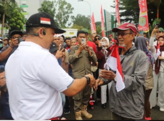 Selain pembagian bendera, acara juga dimeriahkan dengan senam massal yang diikuti ratusan warga setempat. Kehadiran Forkopimda Kaltim, pimpinan perangkat daerah, serta instansi vertikal turut menambah semarak suasana.
